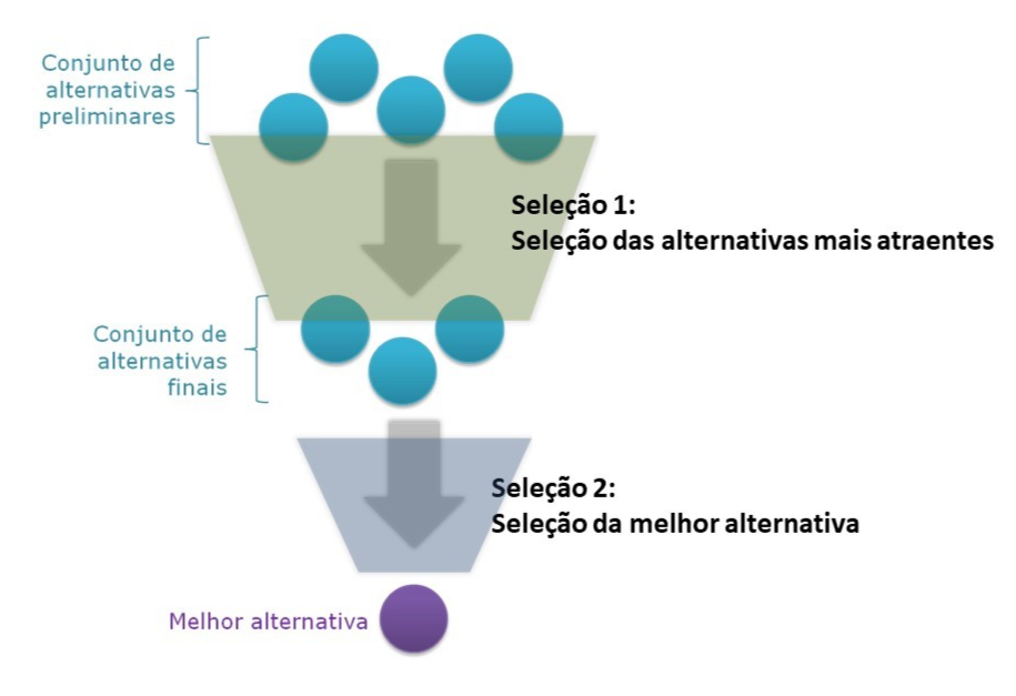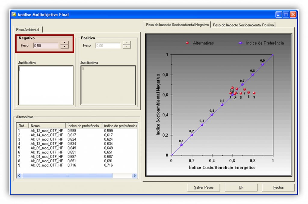Figura 5 – Tela da função para seleção da melhor alternativa, que permite alterar os pesos dos critérios (em destaque em vermelho) de modo a identificar a alternativa mais robusta.