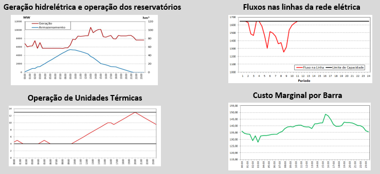 Sistemas com alta capacidade de geração hidrelétrica utilizam a energia armazenada nos reservatórios para gerar eletricidade com baixos custos e alta confiabilidade. A determinação da política ótima de operação e do despacho do sistema é feita em etapas, por meio de modelos de médio prazo (NEWAVE – até 5 anos), curto prazo (DECOMP – até 12 meses, com discretização mensal e semanal) e programação diária, com horizonte de até duas semanas e discretização de até meia hora.