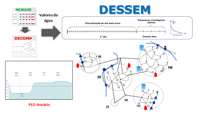 O DESSEM é um modelo de otimização para a programação diária da operação e formação do preço de sistemas hidrotermo-eólicos, em base semi-horária, com modelagem da rede de transmissão por um fluxo de potência linearizado (DC) e restrições de segurança da rede elétrica, restrições de unit commitment das unidades térmicas (incluindo usinas a ciclo combinado), representação detalhada das usinas hidrelétricas (tempo de viagem, função de produção não linear, operação de canais), e representação de outros componentes do sistema, como fontes intermitentes (geração eólica e solar), armazenamento de energia, usinas reversíveis e mecanismos de resposta da demanda.