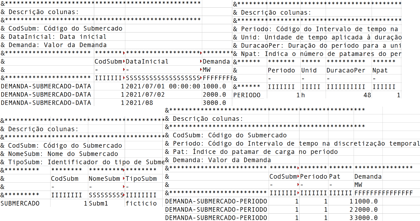 Inicialmente, o formato utilizado para os dados de entrada é baseado em arquivos CSV, por ser um formato usualmente utilizado para fornecimento de dados e facilmente editado em diversas ferramentas existentes.