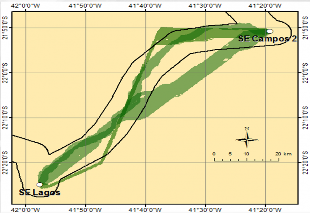 Os resultados obtidos são mostrados na figura a seguir, onde foi possível produzir e visualizar com rapidez uma alternativa que privilegia: 1) o paralelismo com linhas existentes; 2) a tipologia de uso do solo na região; 3) o afastamento das áreas especiais e a proximidade com os acessos.