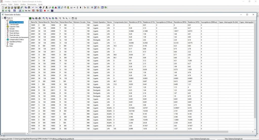 • capacidade de cálculo de impedância equivalente e de caminho topológico mínimo entre duas barras quaisquer