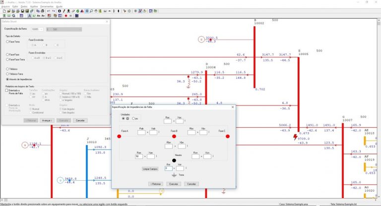 • editor gráfico de diagramas unifilares, permitindo a interação direta sobre os elementos do diagrama e fácil visualização de resultados