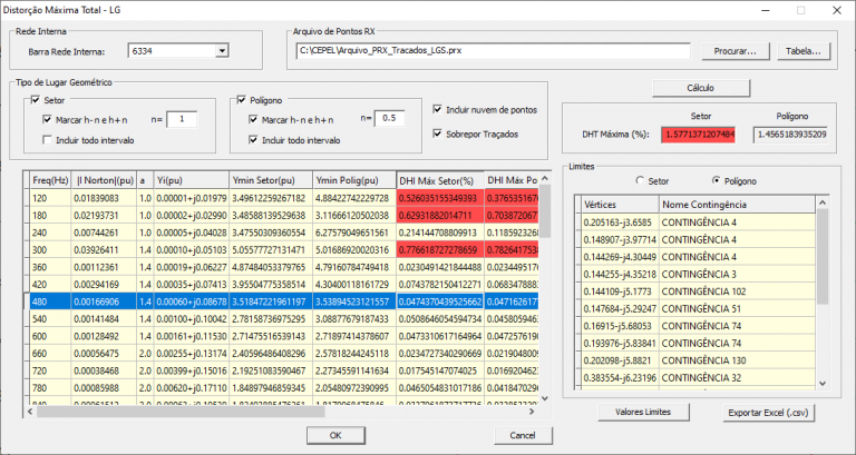 Na interface apresentada na Figura 5, os LGs de todas as frequências são traçados de uma só vez de forma bastante automatizada, bem como são calculadas as distorções harmônicas totais para os setores e para os polígonos.