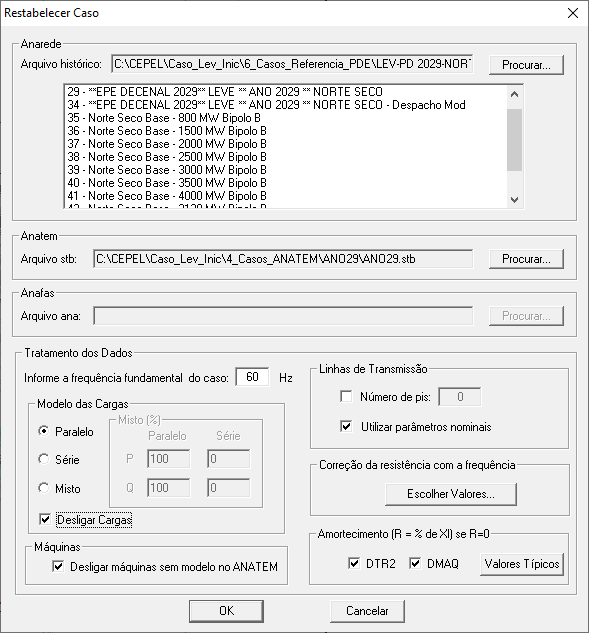A leitura dos arquivos de entrada dos programas ANAREDE e ANATEM (Figura 2) objetiva o aproveitamento de dados de componentes de rede como elementos “shunts”, linhas de transmissão, transformadores, cargas e máquinas do sistema (resistências de armadura e reatâncias subtransitórias).
