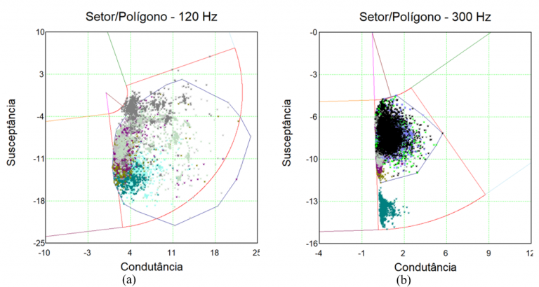 Na Figura 6, são apresentados os traçados de setores e de polígonos para as frequências de 300 (a) e 360 (b) Hz. Estes traçados devem fazer parte dos relatórios exigidos pelo ONS para que o empreendimento possa entrar em operação.