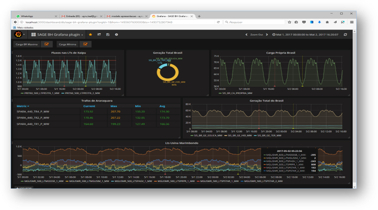 Figura 6 – Dados históricos do SAGE em dashboard Grafana