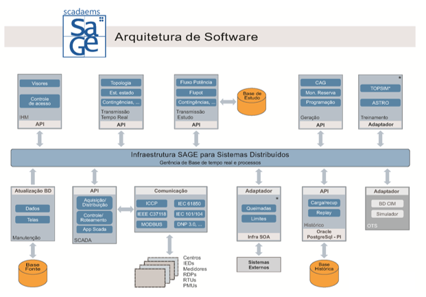 O SAGE é um sistema SCADA/EMS modular, robusto e escalável, concebido para ser facilmente expandido através da adição de novas funcionalidades. O sistema é baseado em uma infraestrutura computacional distribuída, redundante e de alto desempenho. Esta arquitetura confere grande flexibilidade e escalabilidade ao sistema.